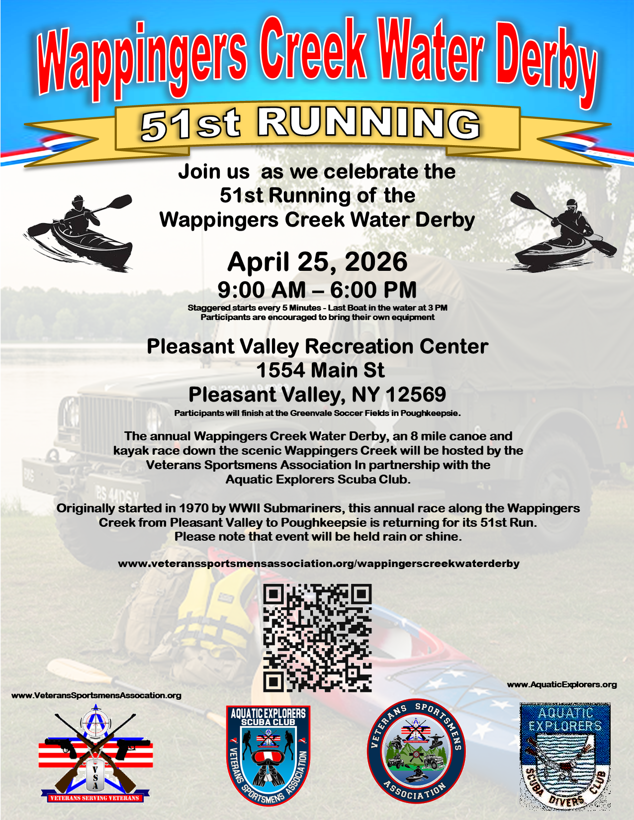 The Veterans Sportsmens Association (VSA) has once again teamed up with the Aquatic Explorers Scuba Club (AESC) to bring back the annual spring Wappingers Creek Water Derby for 2026.